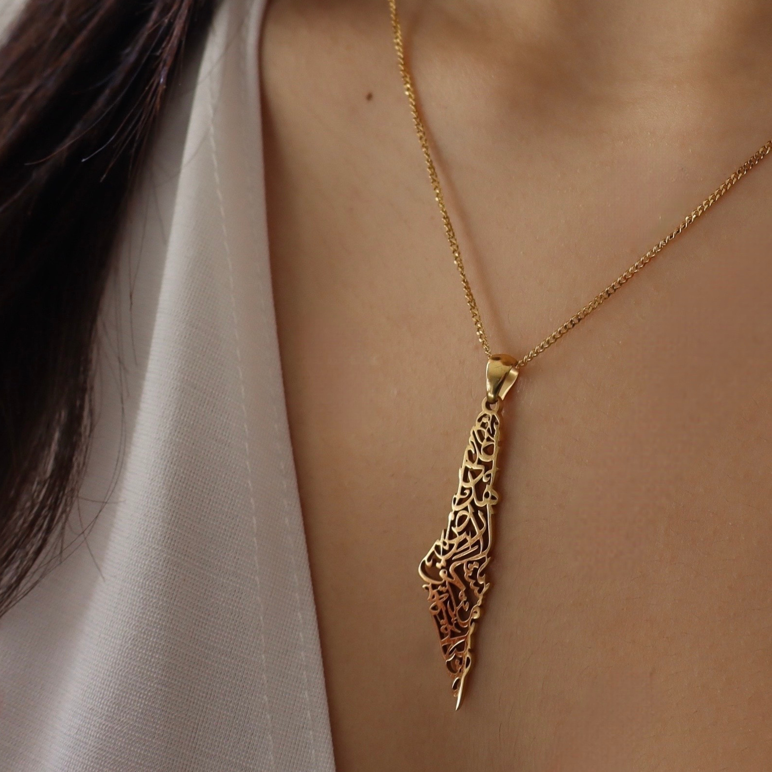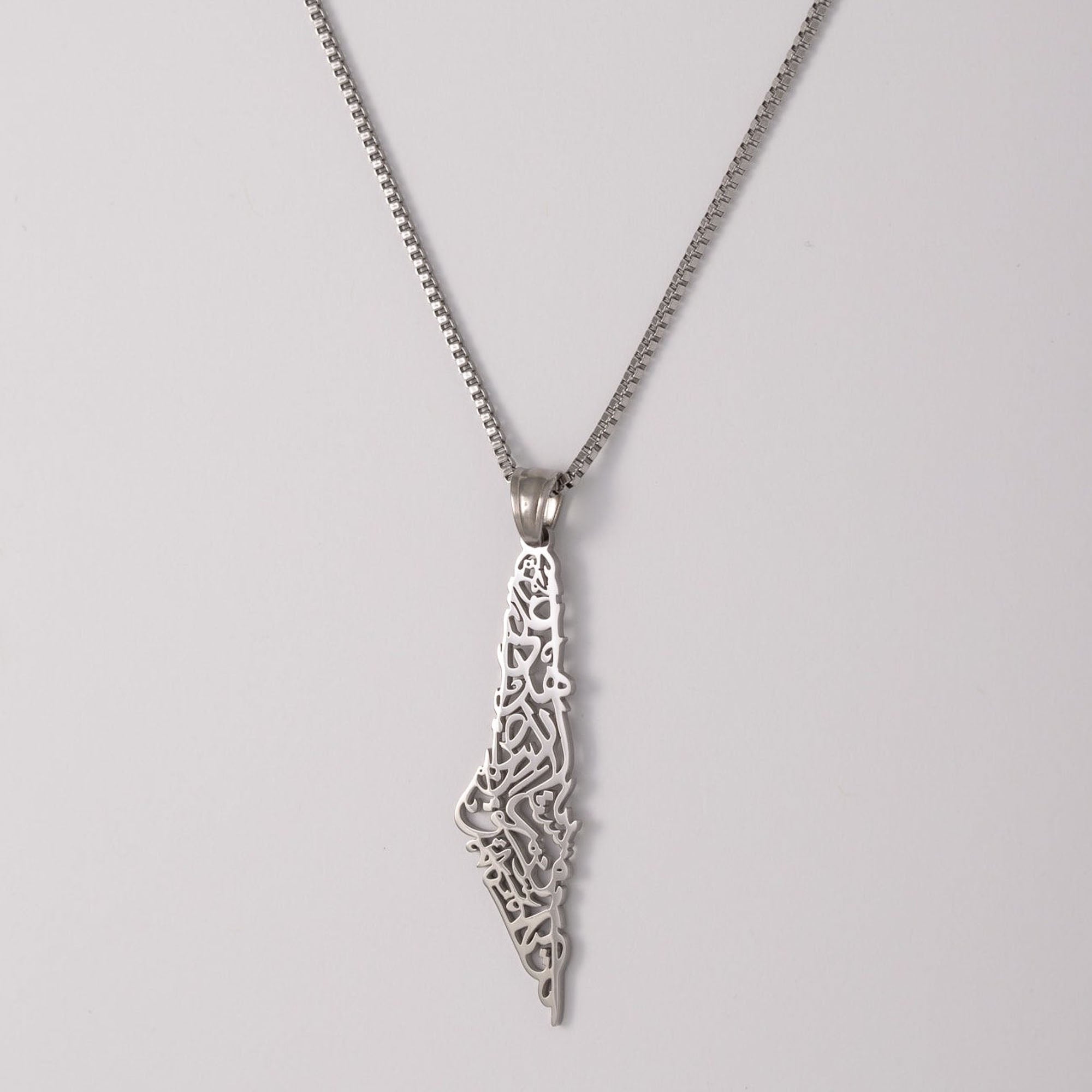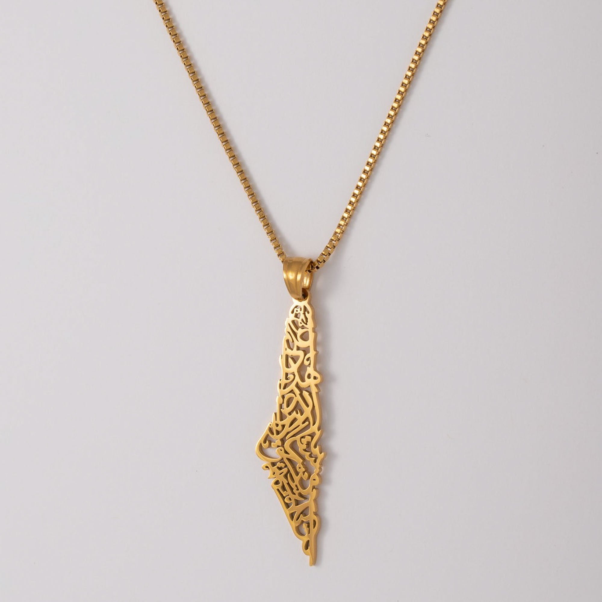 Palestine Calligraphy Map Necklace